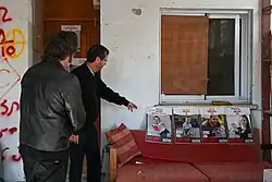 On the day of the attack, Yarden Bibas texted his sister, Ofri Bibas Levy, from the family's safe room to update her on the fighting at and around the Nir Oz kibbutz.[32] At around 6:30 a.m., he sent a message mentioning rocket fire, and then stated that the militants had entered the kibbutz. He expressed concern that his children did not know how to keep quiet. Militants gained entrance to the Bibas home by drilling open the front door. At about 9:45 a.m., Yarden Bibas texted "They're in", shortly after having texted "I love you" to his family.[30]