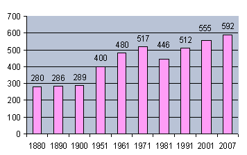 As of 30 November 2010, it had a population of 2,726 and an area of 33.9 square kilometres (13.1 sq mi).[3]