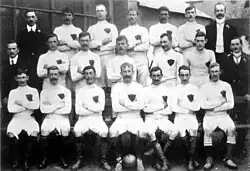 The Kildare crest had a serpent on it until 1993, reflecting that of Kildare County Council, itself based on the crest for the town of Naas.[3] When Kildare County Council had the Heraldic Office of Ireland create a proper crest in 1991, and with Kildare fans regarding the serpent as a bad omen, the Kildare Supporters' Club requested a new one for their county teams; this featured acorns above a bunch of lilies (the county council one differed in that it had a Brigid's cross, a harp, a horse's head and acorns).[3] Kildare still lost in the first round of the Leinster Senior Football Championship (SFC) for three years afterwards, from 1994 until 1996.[3]