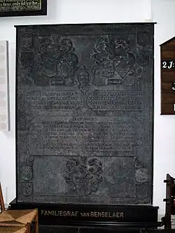 Little is known about Van Rensselaer's death, and sources even disagree on the year.[b] Van Rensselaer was interred in the Oude Kerk in Amsterdam. His memorial stone states he was buried in the church on 7 October 1643.