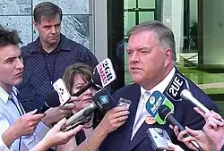 Beazley's leadership was fatally undermined following several public gaffes, including at a press conference on 17 November 2006 when Beazley confused the name of grieving TV host Rove McManus with George W. Bush adviser Karl Rove.[17] Following this, Kevin Rudd and Julia Gillard reached an agreement to challenge Beazley as a joint-ticket, with Rudd as Leader and Gillard as Deputy Leader, and on 30 November 2006, Rudd declared his intention to challenge for the leadership. At the ballot held on 4 December, Rudd defeated Beazley by 49 votes to 39.[18]