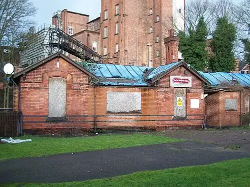 It was built in 1882 for the Midland Railway's Basford to Bennerley Junction branch, at a cost of £2,495 15s 7d, designed by Charles Trubshaw who went on to become a major railway architect.[2] It was designed according to the Arts and Crafts movement to resemble artisan cottages.[2] The rails used in the building of this branch line were taken up from Kimberley station to Bennerley Junction in 1916 and presented to the War Department for use in the battle for the Dardanelles during the First World War. The line from Basford to Kimberley remained in place.[3]
