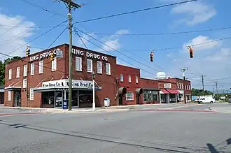King Historic District is a national historic district located at King, Stokes County, North Carolina. The district encompasses 72 contributing buildings and 1 contributing structure in the central business district and surrounding residential sections of King. They were built between about 1914 to the 1950s and include notable examples of Colonial Revival and Bungalow / American Craftsman architecture. Notable buildings include the Bank of King, King Drug Company, Simeon Wesley Pulliam House (c. 1907), James Robert Hutchins House (c. 1905), King Milling Company (c. 1920), and King Moravian Church (c. 1925).[2]