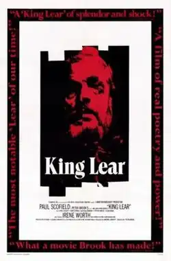 King Lear is a 1971 British film adaptation of the Shakespeare play directed by Peter Brook and starring Paul Scofield.[1] Filmed in stark black-and-white, the film was inspired by the absurdist theatre of playwrights such as Samuel Beckett and upon release was noted for its bleak tone and wintry atmosphere.[2]