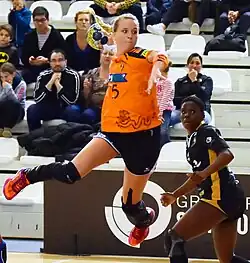 She was capped for Hungary in various age categories and finished second on the top scorers' list of the 2009 European Women's U-17 Handball Championship with 55 goals.[5] A year later, on the European Open Championship in Sweden, Klivinyi clinched the sixth place with the national team and was voted into the all-star team as the best playmaker of the tournament.[6] In appreciation of her outstanding performances in 2010, she won the Heraklész Award, a sports prize given to the individuals in the younger age groups, who represented Hungary in their sports the most successfully.[7] Thanks to her performances in 2011 she took the award in the following year again.[8] In 2011, she was also chosen the best junior handballer of the country.[9]