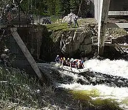 Photo indicates an Esprit Rafting Company Raft descending from the safe, legal and significant navigation of the Laniel Dam.