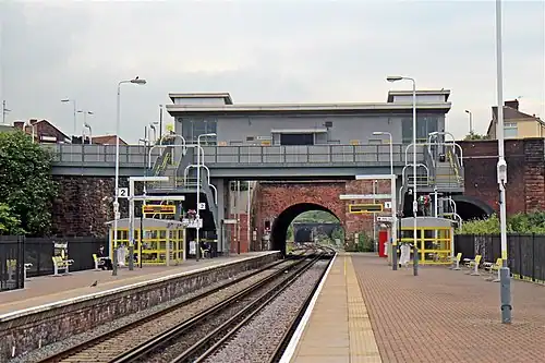 Kirkdale railway station is a railway station in Kirkdale, Liverpool, England, located to the north of the city centre on the Northern Line of the Merseyrail network. It acts as the interchange between the branches to Kirkby and Ormskirk; these lines diverge just north of the station.