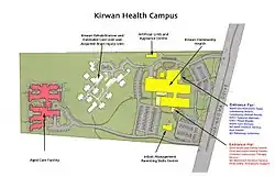 The Kirwan Health Campus offers a range of specialist services and is not an emergency or general hospital, such services are provided out of the Townsville Hospital in nearby Douglas. The Health Campus opened on 21 June 2006 at the former Kirwan Hospital for Women.[1][2]