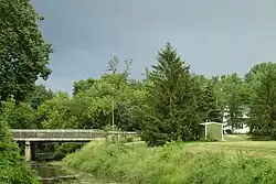 The South Branch of the Kishwaukee River originates near Shabbona on the Cropsey Moraine. The river flows north to Genoa, where it turns westward and flows north-northwest and joins the North Branch near Cherry Valley. The South Branch's average width is 55 feet (17 m).[6]