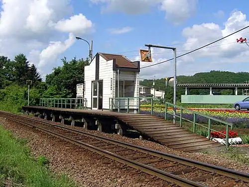 Kita-Biei Station (北美瑛駅, Kita-Biei-eki) is a train station located in Biei, Hokkaidō, Japan. It is operated by the Hokkaido Railway Company. Only local trains stop. The station is assigned the station number F36.