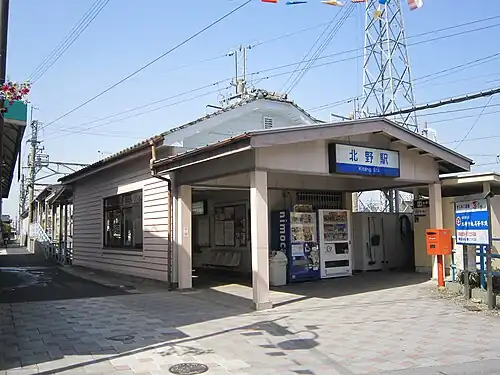 Kitano Station (北野駅, Kitano-eki) is a passenger railway station located in the city of Kurume, Fukuoka, Japan. It is operated by the private transportation company Nishi-Nippon Railroad (NNR), and has station number A08.[1]