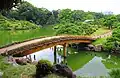 Kiyosumi Garden (清澄庭園, Kiyosumi Teien) is a traditional Japanese stroll garden located in Fukagawa, Tokyo. It was constructed along classic principles in 1878–85, during the Meiji Period, by the shipping financier and industrialist Iwasaki Yatarō.[1] By subtle hints in path construction and placement the visitor is led on a walk around the lake. Water-worn boulders were brought in from all over Japan, to give the garden its character; hills and dry waterfalls were constructed with them and two sequences of them form stepping-stones (isowatari) across small inlets of the lake, which almost completely fills the garden, allowing a pathway of many picturesque episodes around its perimeter. In fact only a narrow band of perimeter planting screens the garden from the structures along Kiyosumi Dori.[2] There are three big islands and a teahouse on the pond. The garden covers an area of about 81,000 square metres.