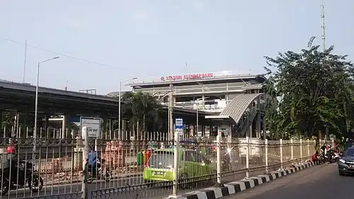 Klender Baru Station (KLDB) is a class III railway station located in Penggilingan, Cakung, East Jakarta. The station, which is located at an altitude of +11 meters, is included in the Operation Area I Jakarta and only serves the KRL Commuterline route. This station now has four railway tracks.