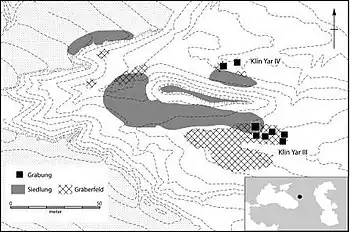 Klin-Yar (or Klin-Jar) is a prehistoric and early medieval site in the North Caucasus, outside of Kislovodsk. It was first discovered in the 1980s. Archaeological excavations had uncovered settlement traces and extensive cemetery areas starting in the 8th century BC, belonging to the Koban culture. The site was used up to the 7th century AD. Its long use over all this period, its size and rich finds, as well as the data quality of recent excavations make Klin-Yar one of the most important archaeological sites of the region.