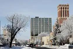 Knox-Metropolitan United Church stands on Lorne Street at Victoria Avenue across from Victoria Park in downtown Regina, Saskatchewan, Canada. It is the current manifestation of Presbyterian and Methodist congregations that date back to "worship services in both traditions…in 1882."[1]