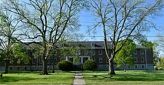 Knoxville Veterans Administration Hospital Historic District is a nationally recognized historic district located in Knoxville, Iowa, United States. It was listed on the National Register of Historic Places in 2012. The first part of the property that was developed is a cemetery, which is located in the middle of the former VA golf course. It contains 40 plots. The State Industrial Home for the Blind was opened on the site of what would become the Veterans Administration Hospital on January 1, 1892.[2] It remained in operation until April 30, 1900, when the last patient moved out. Two years later the facility was transformed into the State Hospital for Inebriates, which was a place of detention and treatment for males addicted to morphine, cocaine and other narcotics. Local citizens protested, and it was closed a few years later.