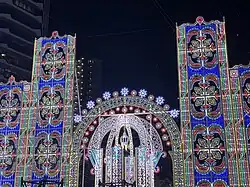 Kobe Luminarie (神戸ルミナリエ) is a light festival held in Kobe, Japan, every December since 1995 to commemorate the Great Hanshin earthquake of that year.[1] The lights were donated by the Italian Government and the installation itself is produced by Valerio Festi[2] and Hirokazu Imaoka.[3] Over 200,000[4] individually hand painted [5] lights are lit each year with electricity generated from biomass in order to stay environmentally friendly.[1]