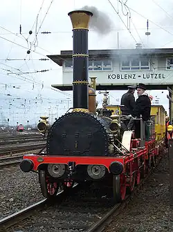 In 1900, construction of the Koblenz-Lützel–Mayen Ost railway started and it was opened in 1904.[4] In 1905 the freight yard was expanded and the Koblenz-Lützel railway workshop (Bahnbetriebswerk Koblenz-Lützel) was built. Freight wagons were repaired in a shed that still exists and freight locomotives were parked in the adjacent roundhouse with twin turntables.