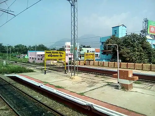 Kodai Road railway station (station code: KQN) is an NSG–5 category Indian railway station in Madurai railway division of Southern Railway zone.[1] It is a railway station in Tamil Nadu state, India, lying between Dindigul and Madurai at 10°10′45″N 77°54′34″E / 10.17917°N 77.90944°E. It is formally listed as Kodaikanal Road (railway station code KQN).