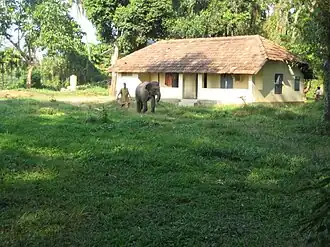 Elephant poaching and training were started in 1895 in the Malayattor forest reserves. The Kodanad elephant training, situated near the banks of Periyar was started in the same year, when the Travancore government decided to train the elephants caught in the wild. By 1950, it became one of the biggest elephant centers in Kerala. Over a period of time, hundreds of other animals and birds were also brought into this place and it was developed as a mini-zoo. There were many mahouts here, who specialized in taming and teaching the elephants. When the Indian government banned elephant poaching in 1977, it became a rehabilitation center for rescued elephants from forests, who have been injured or separated from their herd.[5] With the relocation of the training center to nearby Abhayaranyam, the Kodanad elephant training center became unoperational was closed later. Presently, the main Aanakkoodu (elephant Kraal) here remains as a reminiscent of its rich history.[6] Currently, it is under discussion to turn the century-old place into a heritage monument and start a new center for research on elephants. Some elephant lovers also demands to open a rescue center for baby elephants here.[7]