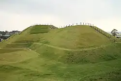 Joenkahofun (上円下方墳) is a rare kind of kofun with a round dome top and a square bottom.[23][24][22]