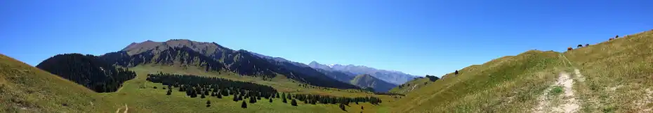 The plateau is part of the Ile-Alatau National Park, a protected area. Almaty, ski resort Shymbulak, Medeu and Big Almaty peak can be seen from the plateau.[3][4]