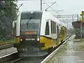 Koleje Dolnośląskie obtained their first electric multiple unit from Przewozy Regionalne in 2013 (it was an EN57AL which had been retrofitted the previous year). Three more EN57-class units were purchased and retrofitted at the cost of the Lower Silesian government. The company also purchased completely new electric vehicles – the first Newag Impuls units (31WE) were ordered in 2011 in a batch of five. In 2014 the operator ordered six Impuls 36WEa units; the following year, they ordered five more 31WE units.[1] The largest order in KD's history was its purchase of eleven 45WE units in 2017,[2] which, when the order was placed, were described as "the most well-equipped and comfortable trains in the country".[3]