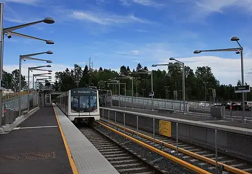 Meanwhile, it became evident for the county that they had severely underestimated the conversion costs, which by 2009 were estimated at 2.5 billion krone.[10] In addition to a general increase in construction costs, a major calculation error had been carried out based on estimates for a light rail, rather than a rapid transit.[12] At the time of closing the estimates called for completion in 2011.[13] An audit in 2010 concluded that the planning had been based on lack of reviews and risk management, with best-case estimates being used instead of properly risk-adjusted ones.[10] Bærum Municipal Council rejected a proposition in 2010 to build additional housing in the vicinity of the metro stations.[14]