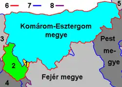 Until the later 19th century the area of Lábatlan and Piszke (now merged with Lábatlan) was an exclave of Komárom county within Esztergom county.