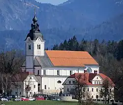 - The commandery of the Knights Hospitaller, also known as the Šmid Manor (Slovene: Šmidova graščina), is located immediately northwest of Saint Peter's Church. It is a two-story structure with four wings and an irregular interior courtyard. Its foundations date to the 13th century, and it was renovated in 1872 and again in 1909.[8] The Partisans burned it in 1944, setting a fire in each room, which destroyed all of the furnishings and badly damaged the frescoes and Gothic stonework.[9]