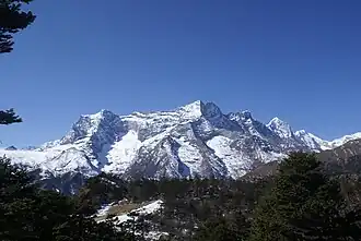 Kongde Ri (sometimes Kwangde Ri) is a mountain in the Himalayas of eastern Nepal. The mountain is located four km west of Namche Bazaar.
