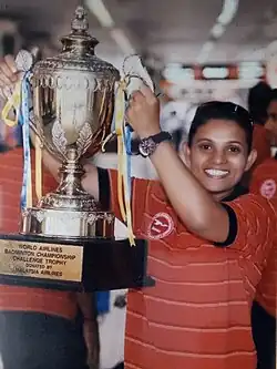 Konika Rani Adhikary won her first national title in 1996 against Sharmin Akthar Momo. She has won 15 titles in her career including seven times in mixed, six times in women's doubles and twice in singles.[2] In 2005 she represented Bangladesh in Asian Badminton Confederation Championship.[3] She participated in the Bajaj Discover Nepal International Series 2008 Badminton Championship in the mixed doubles event with fellow Bangladeshi Abdul Hannan. They lost to Balram Thapa and Pooja Shrestha of Nepal in the opening day of the tournament.[4] She participated in the 11th South Asian Games but lost her match against Pakistani Tennis player Alina in January 2010.[5] She beat Palwasha Basheer, from the Pakistan team in the 2010 South Asian Games, securing Bangladesh badminton team victory over the Pakistan national team, three to one in Bangladesh's favor.[6] She was part of the 2010 badminton national squad of Bangladesh.[7]