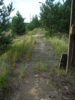 The entire length of the line was a single track with a rail gauge of 1,435 mm[5] and was managed by the regional branch in Poznań.[6] The operational speed was 40 km/h up to the 1.618-kilometer mark, while the remaining section was limited to 30 km/h.[7] Additionally, usage restrictions were imposed on the line – operation was not permitted from Monday to Friday between 12:01 AM–6:00 AM and 10:00 PM–12:00 AM, on Saturdays between 12:01 AM–6:00 AM and 6:00 PM–12:00 AM, and throughout the entire day on Sundays.[8] The line was classified as C3, meaning the maximum axle load was 196 kN/axle (20.0 t/axle), and the maximum linear load was 71 kN/m (7.2 t/m).[9] The route was not equipped with automatic train braking magnets.[10]