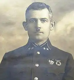 A Russian, Konstantin Yefimovich Kulikov was born in a peasant family on 18 May 1896 in the village of Vitomovo, Yemalyanovsky volost, Staritsky Uyezd, Tver Governorate. He received a fourth-grade education at the village school, and worked on his father's farm.[1] In 1911 he began work as an apprentice roofer for a contractor in Saint Petersburg.[2]