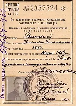 - ^ a b "Рокоссовский Константин Константинович" [Rokossovsky Konstantin Konstantinovich]. www.warheroes.ru (in Russian). Retrieved 18 January 2016.