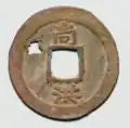 ![]() A Sangpyeong Tongbo (常平通寶) cash coin issued by the Treasury Department Mint (戶). | |