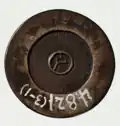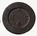 Between the years 1742 and 1752 great quantities of dangijeon (2 mun) Sangpyeong Tongbo cash coins were cast that contained a character from the Thousand Character classic or various other types of symbols and words at the bottom of their reverse sides.[23] Many of these dangijeon cash coins also had a number, circle, or crescent on the left of right sides of the square centre hole.[23] It is currently not known if these symbols represented furnace numbers, series, casting periods, months, years, or if these symbols were just added for every new batch of mother coins.[23]