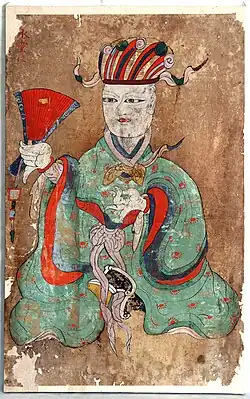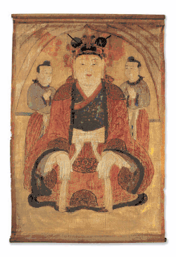 A painting of Suryeong, a village patron god of the Naewat-dang shrine, potentially dating from the 15th century