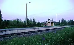 The Korkeakoski railway station (Finnish: Korkeakosken rautatieasema, Swedish: Korkeakoski järnvägsstation) is a railway station located in the municipality of Juupajoki, Finland, in the municipal seat and urban area of Korkeakoski. It is located along the Tampere–Haapamäki railway. Korkeakoski has only served freight transport since 1990; in 1998, the Juupajoki halt, located approximately 1.35 kilometres (0.84 mi) to the south from Korkeakoski, was opened to serve passenger transport in the area.[2]