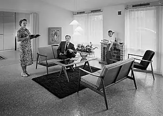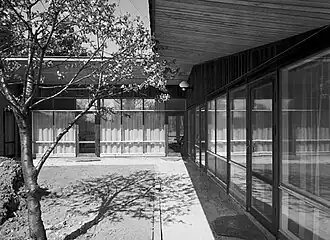 In the 1950s Vicke Lindstrand, who served as the company's artistic director from 1950 to 1973,[13] commissioned the architect Bruno Mathsson to design several buildings for Kosta. These included an exhibition hall and a row of terraced worker's houses. The latter, known as the Kosta Glashus, was granted legally protected Byggnadsminne 'Building Monument' status by the Swedish National Heritage Board in 2007.[14]
