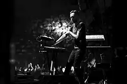 Kostiantyn Sukhonosov (born 5 August 1983) (Ukrainian: Сухоносов Костянтин Анатолійович) is a Ukrainian sound producer, arranger, composer and most notably the keyboard player in Skryabin band since 2003.