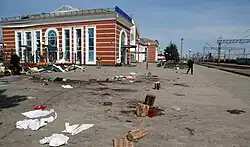 The station was damaged and numerous civilians were killed and injured by the Kramatorsk railway bombing in April 2022 during the Russian invasion.[2] The attack killed at least 50 people, who were civilians trying to evacuate.[3]
