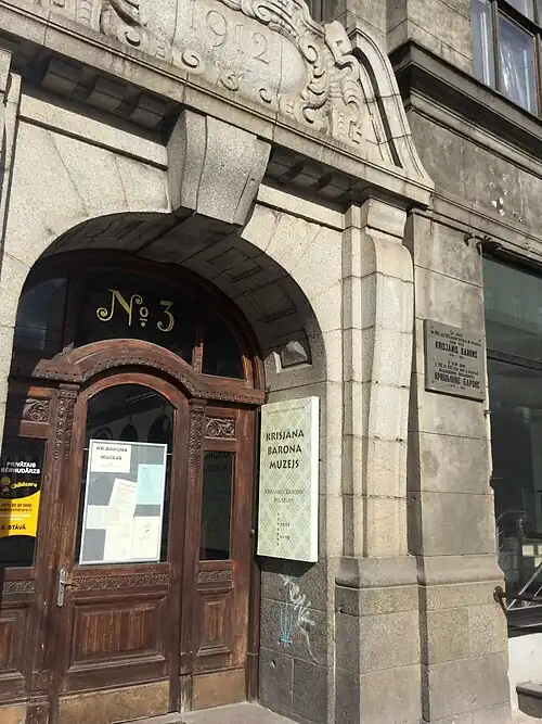 Krišjānis Barons Memorial Museum is a museum in Riga, Latvia. The museum is dedicated to the folklorist Krišjānis Barons and was established on October 31, 1985.