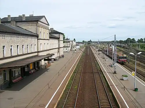 The station building is located on the central platform and is connected to the town by a footbridge. At the station there is also a large depot of Przewozy Regionalne, including a working turntable and Roundhouse.