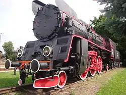 Steam Engine Ol49-82 is plinthed at the station.