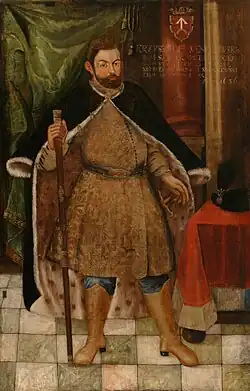 Krzysztof Wiesiołowski (died 1637) was a Polish nobleman, starost of Tykocin and Supraśl, Stolnik of Lithuania and Ciwun of Wilno before 1620, Court Marshal of Lithuania from 1619, Krajczy of Lithuania from 1620, and Grand Marshal of Lithuania from 1635.