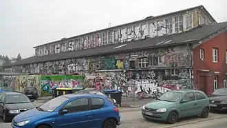 After the great concert hall had to close in 2010 due to danger of collapse, a new concert hall was inaugurated in November 2012. The historic water tower was renovated for E4.5 million and inaugurated in March 2015, marking the end of a five-year renovation program for the entire complex.[1] It is now used as an office building; its outbuildings are used for small concerts and house a bar. The last of the old slaughterhouse buildings was torn down in 2015.[2]