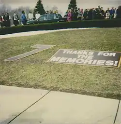 Kulwicki was buried at St. Adalbert's Cemetery in Milwaukee; the funeral was attended by NASCAR President Bill France Jr. and numerous drivers.[64] Kulwicki's racecar transporter was driven from the rainy track later that Friday morning while other teams and the media watched it travel slowly around the track with a black wreath on its grille.[65] As the transporter passed the start / finish line, the flagman waved a checkered flag.[66] In 2008, Kyle Petty described the slow laps as "the saddest thing I've ever seen at a racetrack... We just sat and cried."[65] Kulwicki had competed in five NASCAR races that season with two Top 5 finishes, and was ranked ninth in points at his death.[67] In his career, he had won five NASCAR Winston Cup races, 24 pole positions, 75 Top 10 finishes, and one championship in 207 races.[68][69]