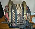 Shita-kura or hadazuke, the twin set of double leather pads attached to the bottom of a Japanese saddle tree (kurabane). The shita-kura (hadazuke) protects the back of the horse from the kurabane.
