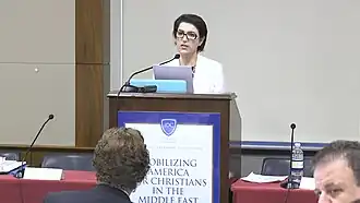 After the establishment of Kurdistan Regional Government (KRG), women were able to form their own organizations and several women became ministers in the cabinet of local government. In September 2003, Nasrin Berwari was appointed to the 25-member Iraq provisional cabinet as minister of municipalities and public works, and in June 2004, she was among six women named to the 30-member transitional cabinet and in April 2005 was named permanently to that post. As the top Iraqi official in charge of municipal and environmental affairs, Berwari is considered as one of the most important figures in the Iraqi civil administration.[66] However, in the assessment of Dr. Choman Hardi, the director of the Center of Gender and Development at the American University of Iraq - Sulaimani, "although the Kurdistan Regional Government wants to appear progressive and democratic, by granting women their rights, it's still quite superficial and women play a marginal role."[72]